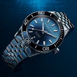 С момента своего основания в 1976 году RAYMOND WEIL всегда гордился тем, что называет Женеву своим домом. Сегодня Дом отмечает тесную связь с городом, выпуская новую версию популярной модели дайвера freelancer. Часы RAYMOND WEIL freelancer diver (ограниченная серия Женева) посвящены Женевскому озеру, широко известному как Lac Léman, самой узнаваемой достопримечательности города.