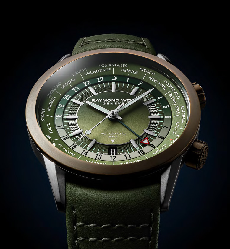 Женевская часовая компания RAYMOND WEIL представляет новинку – Freelancer Worldtimer. Способные одновременно показывать время в 24 часовых поясах, эти часы идеально подходят для тех, кто много путешествует и часто меняет города и часовые пояса. Несмотря на свою сложность, модель остается тонкой благодаря новому механизму с автоподзаводом RW3230.
