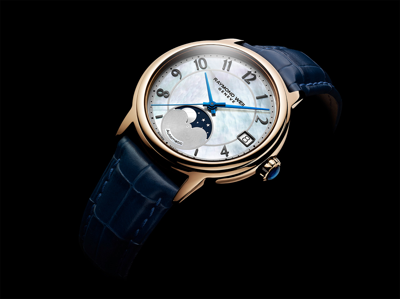 Коллекция Maestro от RAYMOND WEIL, впервые представленная в 2010 году, воспевает виртуозность швейцарского часового мастерства и благородство классической музыки. Эти механические часы с автоподзаводом, изготовленные с соблюдением швейцарских часовых традиций, оснащены индикатором фаз Луны в положении «на 6 часов» и 38-часовым запасом хода.