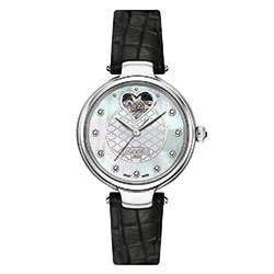 Очаровательное маленькое сердечко в скелетном дизайне – самый привлекательный элемент на циферблате DREAMLINE I из коллекции автоматических часов. Каркасное окно в форме сердца органично объединяет две зоны. Вы можете мельком увидеть сложный швейцарский автоматический механизм. Весь циферблат благородно переливается белым перламутром, демонстрируя круглую, изысканно позолоченную область с волнистым рисунком в виде сот в центре.