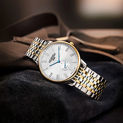 Классический круглый циферблат GALAXY GENTS с центральными стрелками и миниатюрной секундой в положении «6 часов» имеет гильошированный серебристый или синий эффект солнечного луча под антибликовым сапфировым стеклом. Римские цифры в черном или контрастном серебре излучают традиционное очарование. Высококачественный дизайн корпуса из нержавеющей стали завораживает утонченностью. Он обрамлен ушками и цельным браслетом таким образом, что подчеркивает круглую форму циферблата. Часы GALAXY GENTS доступны в восьми вариантах и двух размерах. Выбор модели с диаметром корпуса 41 мм или 38 мм зависит не только от размера вашего запястья, но и от личных предпочтений. Привлекательный металлический браслет имеет мужской стальной вид или элегантный двухцветный дизайн с золотым или розовым золотым покрытием.