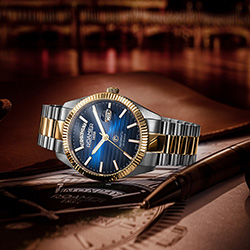 С первого взгляда PRIMELINE DAYDATE II очарует незаурядными деталями дизайна и благородным внешним видом. Он включает вертикальные «Женевские» полосы на механизме, рифленый безель и заводную головку, а также легко читаемый циферблат с элегантными стрелками и индексами. Полукруглая апертура дня недели на отметке «12 часов» и малое окно с датой в положении «3 часа». Частично светящиеся стрелки и продолговатые индексы облегчают считывание времени даже в темноте. Тонкая центральная секундная стрелка и микрокруглые минутные метки завершают образ циферблата.
