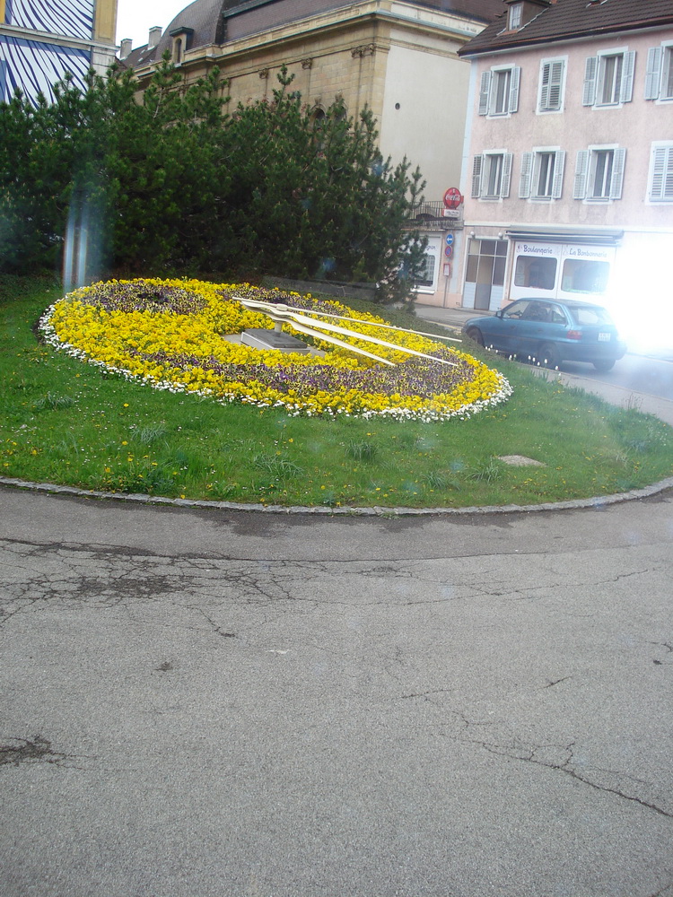 Там даже на жилых домах часы, причем часы действующие! На здании храма, и, конечно, на зданиях фабрик или представительств часовых марок - это обязательно. В Ле Локли мы увидели даже часы-клумбу - и эти часы тоже шли.