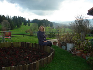 Обедать нас повезли на ферму. Оказалось, что здесь нас сбудут угощать ужином! В любой чужой стране на самом деле интересно, куда повезут хозяева, чем будут хвастаться. Нам хвастались часами, чистым воздухом и национальной кухней. Кормили травками: очень вкусными салатами. Ужинали в отеле в Ле Локли - весь город, как на ладони. И горы, цвета, облака - просто очень красиво!