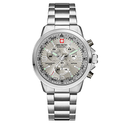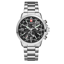 | 4. Swiss Military Hanowa Ace Chrono 6-5251.33.001: стальной корпус; безель, заводная головка и кнопки хронографа с чёрным PVD-покрытием, чёрно-серый циферблат, стальной 5-рядный браслет. |
