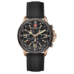 | 4. Swiss Military Hanowa Arrow Chrono 6-4224-09-007: стальной корпус с PVD-покрытием из розового золота, чёрный циферблат, чёрный ремешок. |