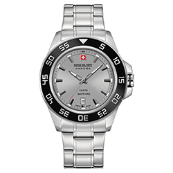 - Swiss Military Hanowa Sword 6-5221-04-009: серебристый корпус, чёрный безель и серый циферблат, браслет серебристого цвета.
