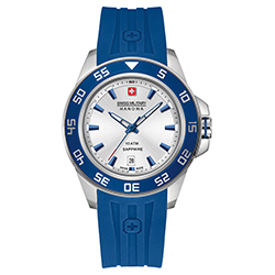 - Swiss Military Hanowa Sword 6-4221-04-001: серебристый корпус, синий безель, серебристый циферблат, ремешок синего цвета.