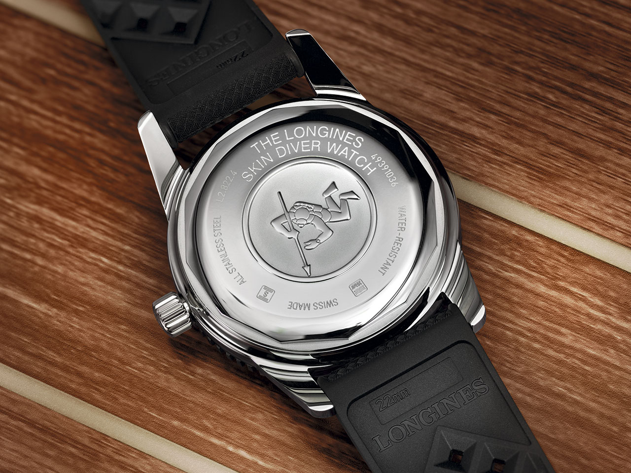 Обновленные The Longines Skin Diver Watch сохраняют дух и черты оригинальной модели, которая оставила заметный след в истории компании. В современную версию создатели добавили детали, повышающие функциональность часов: сапфировое стекло, завинчивающуюся заводную головку и заднюю крышку, обеспечивающую водонепроницаемость на глубине до 300 метров. Модель оснащена механизмом с автоподзаводом калибра L888, эксклюзивно выпущенный для швейцарского часового бренда.