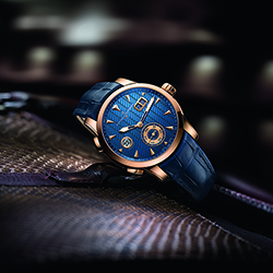 | 3. Модель Dual Time Manufacture 3346-126LE/93 лимитированная серия 500 экземпляров: корпус из 18-каратного розового золота, синий циферблат, синий ремешок из кожи аллигатора. | |