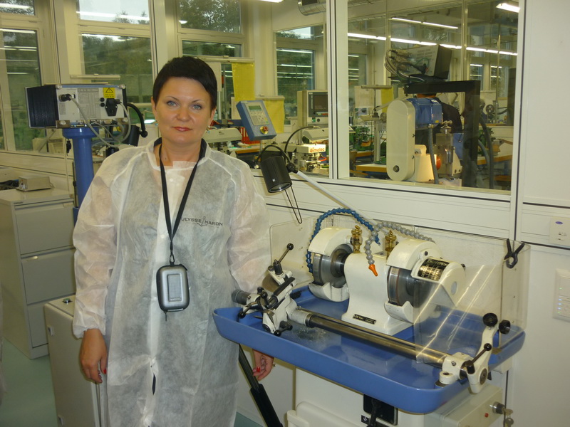 Скрупулезность и точность мастеров Ulysse Nardin поражала не раз. Некоторые детали, из которых собираются часы, настолько малы, что даже под лупой такие шестеренки выглядят очень маленькими. Естественно, в процессе обращения с деталями нужны максимальная собранность и сконцентрированность. Поэтому у каждого работника на фабрике есть свой  личный график – отработал несколько часов, отдохнул и опять за работу. И если мужчины в основном занимаются разработкой идей коллекций и задействованы на технологически сложных участках, женщины выполняют более монотонную работу - например, одна из них всю смену тщательно шлифует винтик, вставляет в его паз.