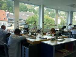 С посещением производства наш визит не завершился. Мы отправились на святая святых, откуда началась история Ulysse Nardin. В историческом здании, которое охраняется государством, в Ле Локле собираются самые сложнейшие часы – лимитированные серии. Не передать словами те чувства, которые возникают, когда держишь в руках знаменитую серию Чингиз Хан. Фигурки жакемаров, символизирующих сражающихся воинов, вырезаны вручную из розового золота 18 карат на циферблате из черного оникса, внутри наряду с турбийоном есть еще ряд сложнейших усовершенствований... Не каждому человеку в жизни удастся подержать в руках такое творение, поэтому момент, конечно, запомнился.