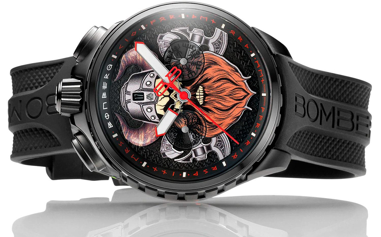Стильные часы придутся по вкусу уверенным личностям готовым с легкость заявить о себе и ярко продемонстрировать неординарность характера. Bolt-68 Heritage Viking. Часы-трансформер с хронографом и секундомером. Секундомер с точностью 1/10с. Массивные заводная головка и кнопки управления хронографом находятся в верхней части корпуса. Циферблат декорирован изображением викинга (свирепый и отважный мужчина пришедший из Скандинавии) и эмблемами и значками из скандинавской мифологии. Циферблаты хронографа выполнены в виде важнейших символов викингов Иггдрасиль (древо жизни) и Вегвисир (северный компас). Борода викинга украшена люминесцентным составом. Мечевидные стрелки с люминесцентным покрытием.